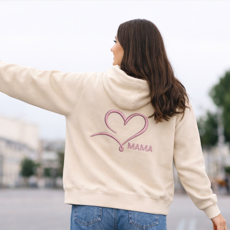 Džemperis mamai su siuvinėta elegantiška balta širdele nugaroje | 3 spalvos