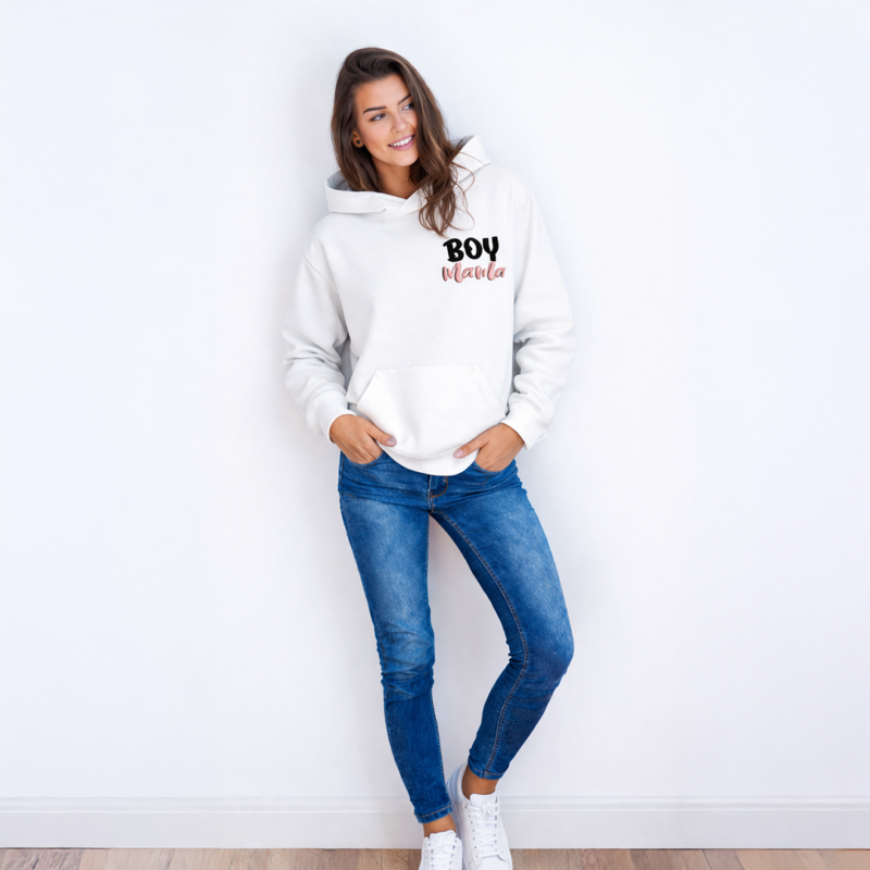 Džemperis dovana mamai su siuvinėta balta/rožine dekoracija ant krūtinės (BOY MAMA) | 5 spalvos